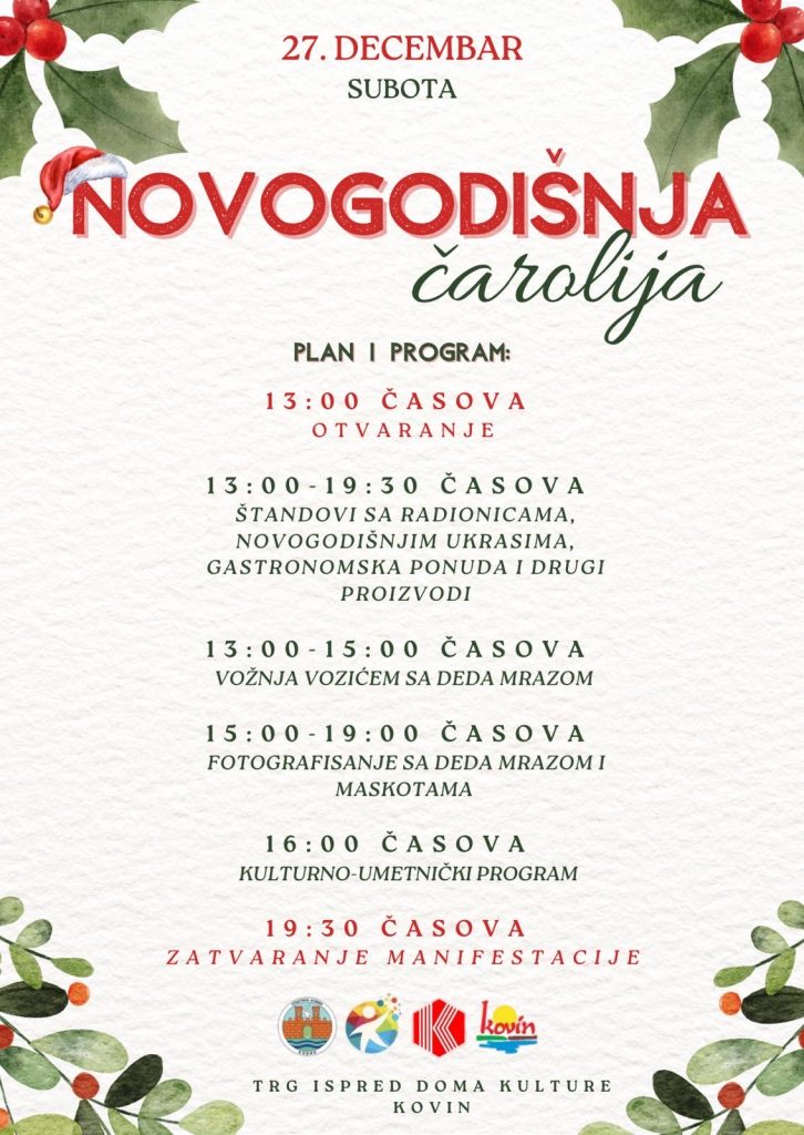 Манифестација „Новогодишња чаролија“ биће одржана у суботу, 27. децембра, на Тргу испред Центра за културу у Ковину, у организацији Савета за младе Општине Ковин, Центра за културу Ковин и Туристичке организације Ковин, а под...